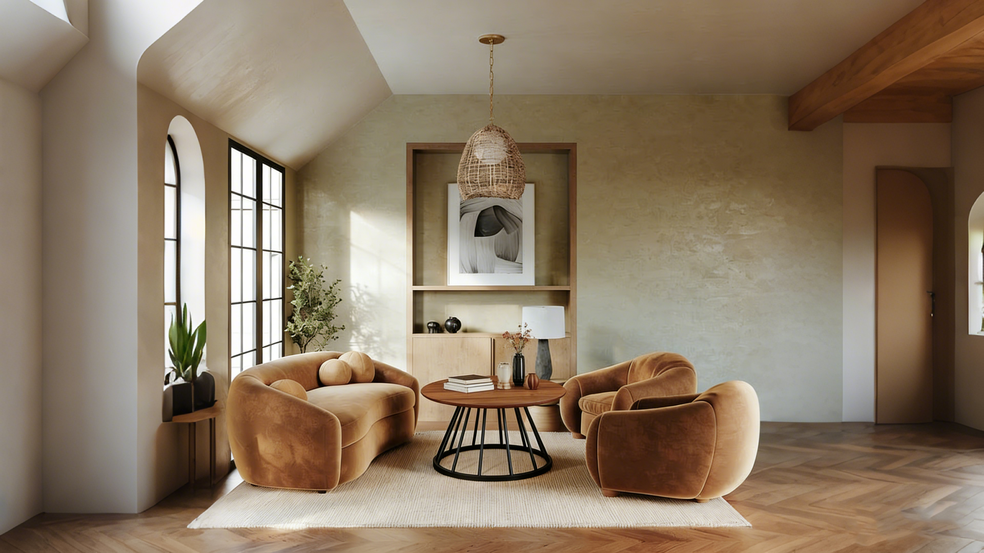 The entire chair is upholstered in soft fabric and padded with comfortable, high-density foam cushions—a design style that calls for equally elegant and comfortable pairings.